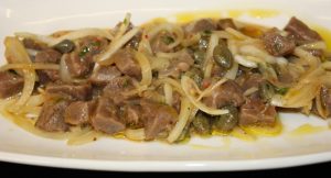 Cortar el atún en dados pequeños.
