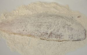 Rebozar con harina. Dar unos golpecitos para eliminar el exceso.