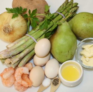 Esta crema es diferente ya que se hace con una hortaliza, el espárrago, y una fruta, la pera, además de dos clásicos en las cremas, la cebolla y la patata.