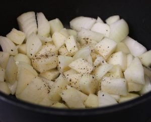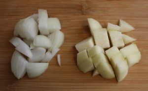 Mientras tanto pelar y trocear la patata.
