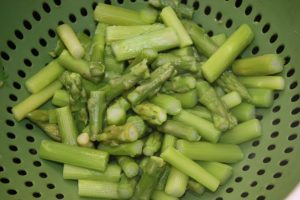Escurrir y reservar tanto los espárragos como el agua de cocción ( quedarán aproximadamente 500 ml ).