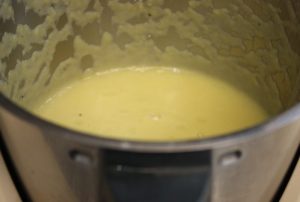 Poner todo el contenido de la olla en la thermomix o el robot de cocina que tengáis. También lo podéis triturar con una batidora.
