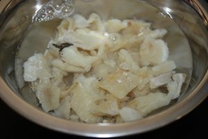 Aunque el bacalao esté desalado, ponerlo 5 minutos a remojo para que se ablande.