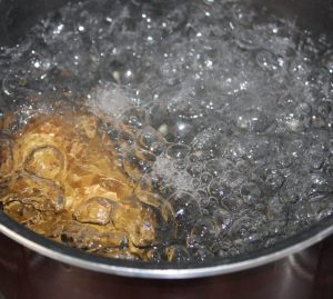 Disolver la cucharada de maicena en un dedo de agua fría ( se disuelve en agua fría para que no se formen grumos ). Añadir al cazo.