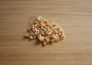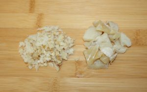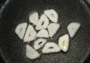 En una satén, con la cucharada de aceite, dorar el ajo cortado a láminas.