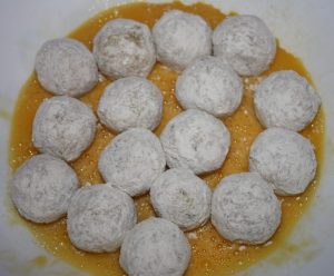 Hacer bolitas y pasarlas por harina….