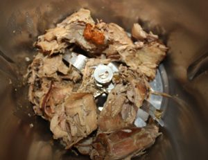- 250 g de carne de cordero conservado en su caldo ( del que nos sobró de la receta de pierna de cordero guisado )