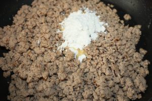 Fuego medio – fuerte. Dar una vuelta. Añadir la harina.