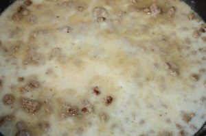 Dar otra vuelta y poner la leche y el caldo.