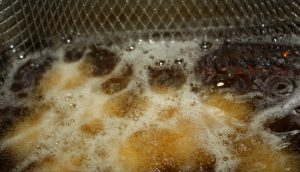 Freír en abundante aceite caliente. Si tenéis freidora, genial, sino no pasa nada, poner aceite en una sartén de manera que las croquetas queden cubiertas.