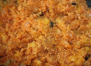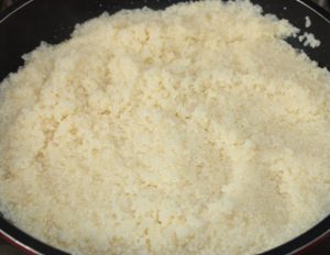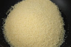 En una sartén con dos cucharadas de aceite, poner el cous cous. 2 minutos a fuego fuerte.