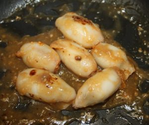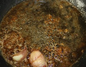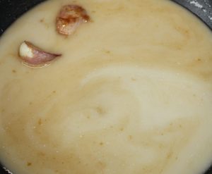 Reservar la sartén con los dos ajos. En ella después haremos la salsa.