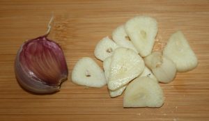 Pelar los ajos y laminarlos.