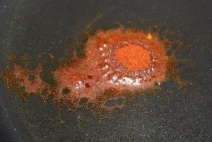 En esta misma sartén añadir el pimentón. Dar una vuelta.