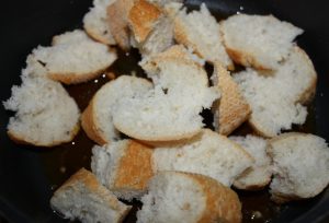 Cortar el pan en trozos irregulares grandes.