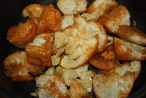 En una sartén con el aceite dorar los ajos. Retirar y reservar.
