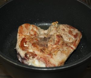 Dorar en una cazuela con 2 cucharadas de aceite. 3 minutos por cada lado a fuego medio – alto.