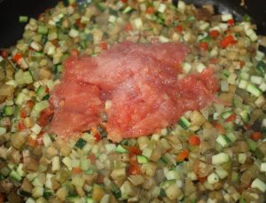 Por último poner el tomate frito. Cocer otros 20 minutos más, tapado.