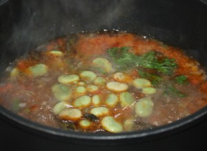 En cuanto comience a hervir, incorporar las habitas. Dejar cociendo 20 minutos a fuego medio – bajo.
