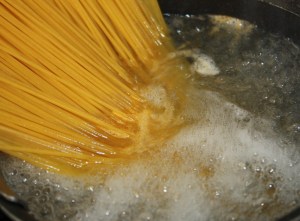 Cocer la pasta, siguiendo las instrucciones del fabricante. Suelen ser 10 minutos en agua hirviendo con una pizca de sal. Escurrir y añadir a la sartén donde tenemos la salsa.