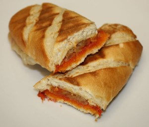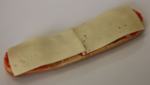 Introducir en una sandwichera para que se funda el queso. Sino tenéis, lo podéis meter en el horno, a 220º, o simplemente calentarlo en una sartén con el fuego al máximo.