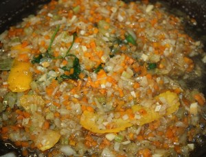 Una vuelta y añadir el vino. Subir el fuego al máximo, y dejar 3 minutos para que se evapore el alcohol. No dejar de mover.