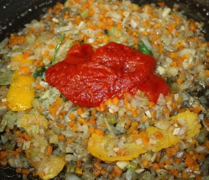 Momento de poner el tomate. Bajar el fuego al mínimo, 2 minutos.