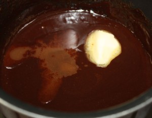 Poner el coñac y la mantequilla. Mezclar bien hasta conseguir una mezcla homogénea.
