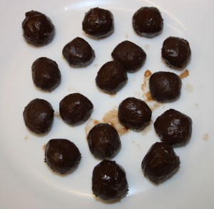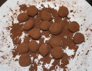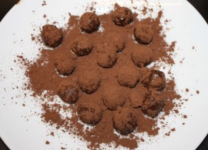 Para que se impregnen bien de cacao, mover el plato. Si las cogéis con las manos, se os deformaran. Simplemente con el vaiven del movimiento del plato, se mueven y van quedando cubiertas por el cacao de manera uniforme.
