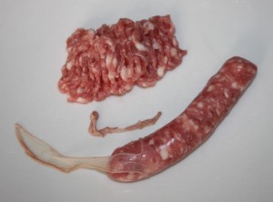 Quitar la piel de las longanizas y desmenuzar la carne, aplastándola con un tenedor.
