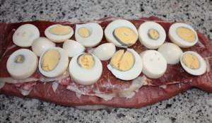 ….los huevos duros cortados en rodajas.