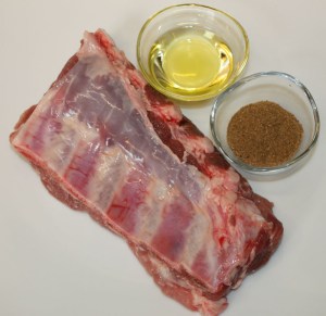 El costillar, por la parte de los huesos, tiene una pequeña telita de grasa. Si se elimina, la carne queda mucho más jugosa. Es muy fácil. Meter un cuchillo entre los huesos y esta telilla. Para separarla, tirar de ella y fácilmente se desprenderá. Si se rompe, no pasa nada, volver a utilizar el cuchillo para repetir la operación.