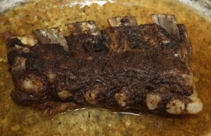 Sacar del horno. Abrir el paquete y eliminar el papel de plata. Tener cuidado para que no se os rompa el costillar, ya que como veréis, esta super tierno.