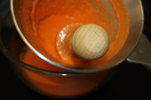 Pasar por el chino, pasapurés, o un colador de malla fina.