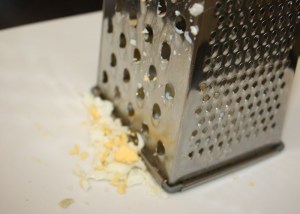 Rallar el otro huevo, con un rallador de agujeros grandes.