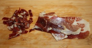 Picar el jamón, no muy fino.
