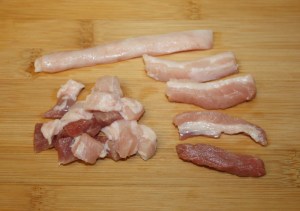 Mientras tanto cortar la panceta en dados pequeños. Eliminar la piel.