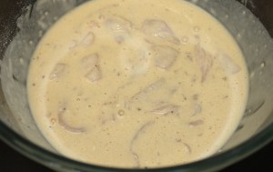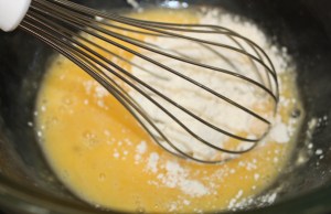 Mezclar la harina con el huevo, e ir añadiendo poco a poco la cerveza.