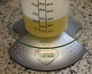 A 250 ml de jugo de melón, añadir 2 g de alginato.
