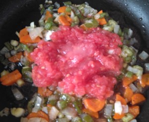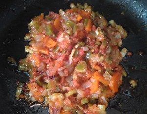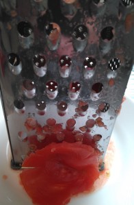 Añadir el tomate rallado y el azúcar. Subir el fuego y dejar 5 minutos.
