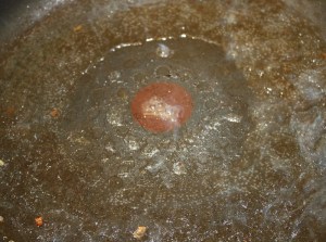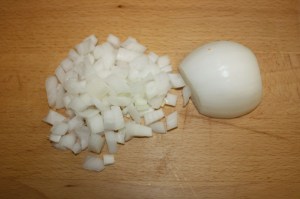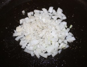 En la misma sartén que hemos utilizado para los langostinos, pochar la cebolla. Salpimentar. 10 min con el fuego bajo.