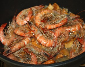 Esta es una receta que hacía siempre mi madre el segundo día de Navidad. No se por qué la llamaba así, langostinos Mery, pero ya se ha quedado el nombre. Está buenísima y tiene la ventaja de que es muy fácil y se puede hacer por la mañana y calentar en el momento de comer.