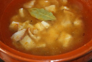 Cuando comience a hervir, tapar y bajar el fuego. Dejar cociendo hasta que la sepia esté tierna, una media hora. Añadir la sal al final.