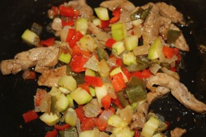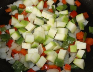 Añadir el calabacín. Dejar 10 minutos. Mover de vez en cuando para que no se queme.
