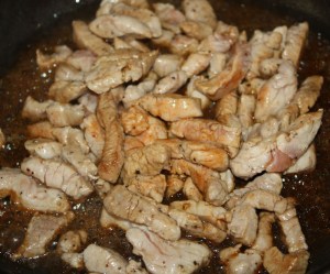 En cuanto la carne pierda su color rojo, y se haya evaporado un poco la salsa de soja, sacar. Si se hace demasiado quedará muy seco.