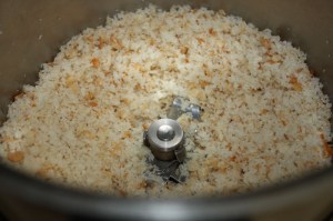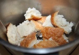 El pan debe tener, por lo menos, dos días. Rallarlo o triturarlo en la Thermomix u otro robot de cocina.