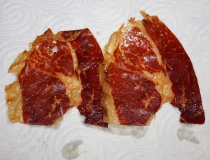 Sacar el jamón, y escurrir el aceite que suelta sobre papel de cocina.