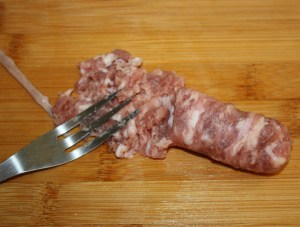 Mientras tanto quitar la tripa de la longaniza y machacar con un tenedor.