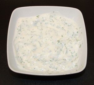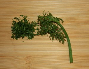 En un cuenco mezclar el yogur con una cucharada de eneldo picado.