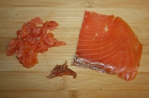El ahumado es un proceso de conservación para prolongar la duración de los alimentos. Se emplea en muchos productos: carnes, pescados, cecina, panceta, quesos…. En concreto el salmón ahumado me encanta, tanto para comer en una simple tostada, como para elaborar otros platos.
